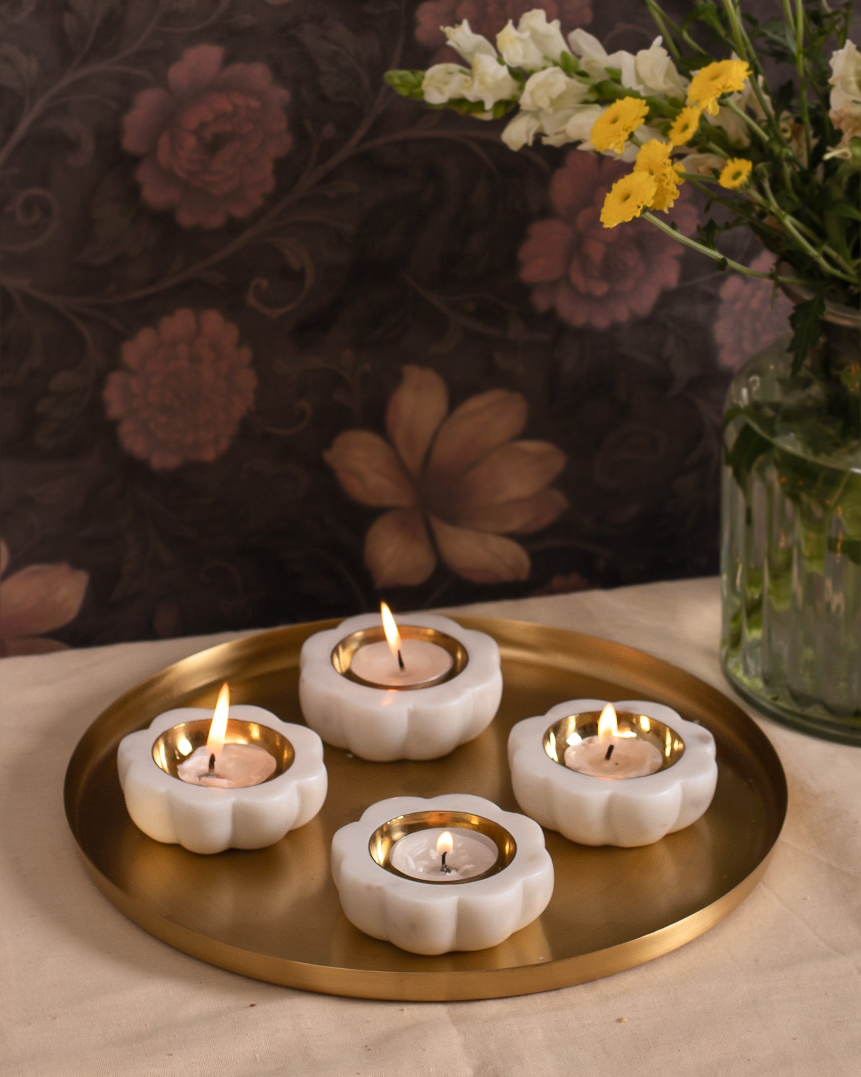 Our Chaand marble diyas blend timeless tradition with a modern twist. Handcrafted from smooth white marble with subtle brass accents, each diya is designed to hold a tea light or a traditional wick. Elegant yet functional, they bring a warm, celestial glow to your festive rituals or everyday moments.