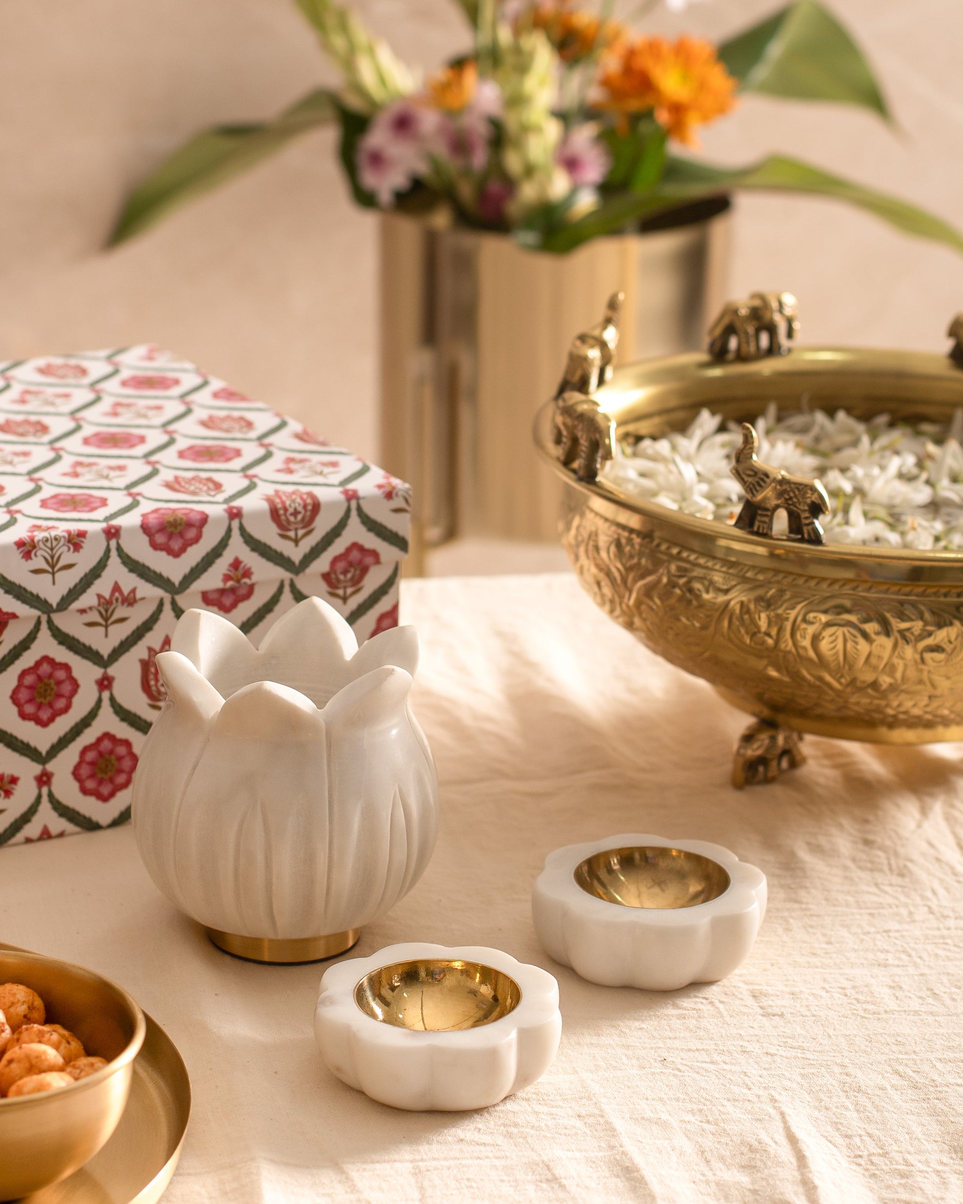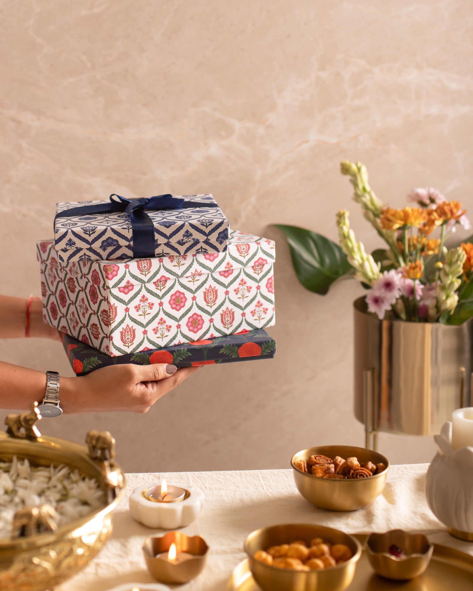 Bold, bright, and ready to gift—our festive boxes bring a burst of joy to every celebration. Designed to hold our artisanal marble candle holder and two marble diya's, each box is a celebration of color, craft, and care.
